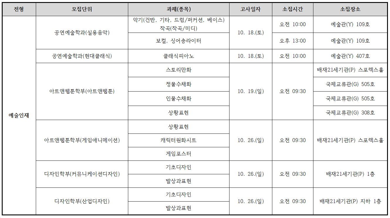 제목2026학년도 수시모집 실기고사[예술인재 전형] 안내