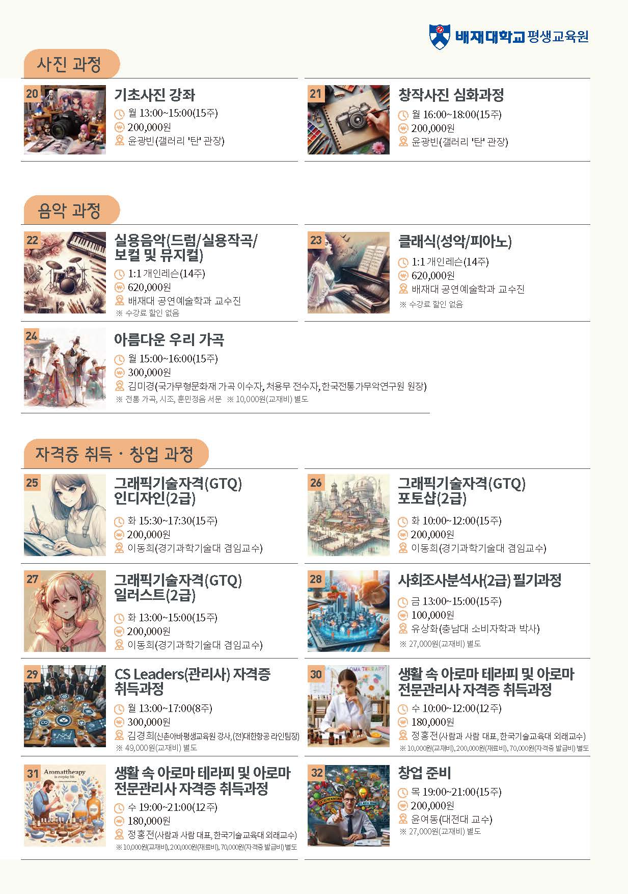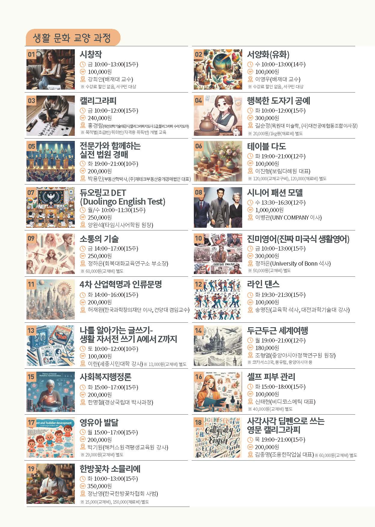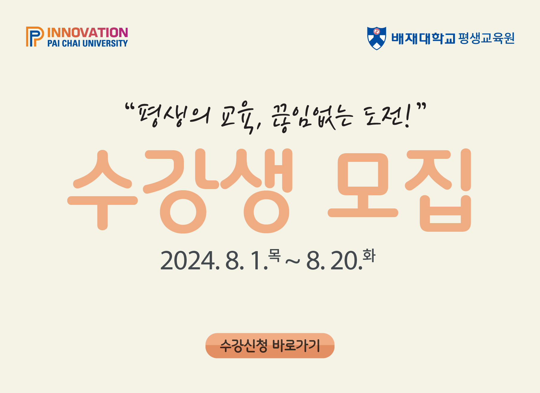 제목[평생교육원] 2024학년도 2학기 개설 강좌 수강생 모집 안내