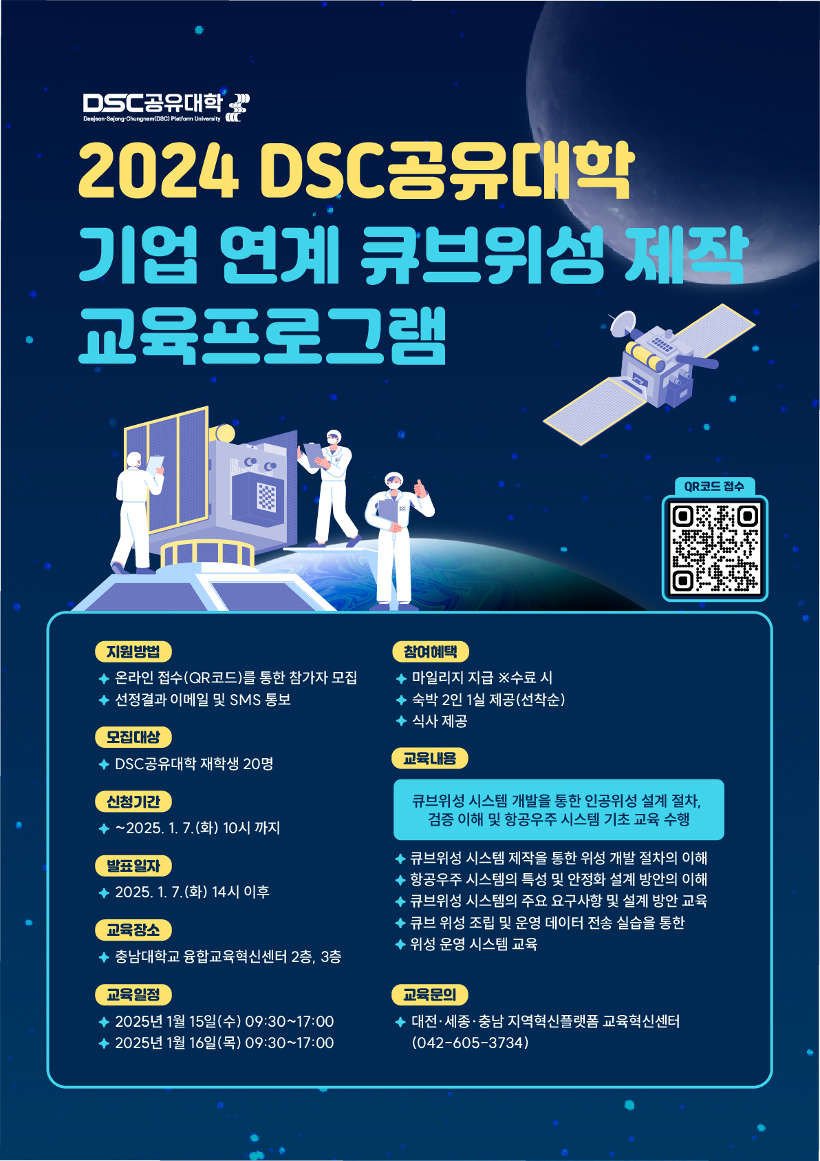 제목2024년 DSC공유대학 기업 연계 큐브위성 제작 교육프로그램 안내