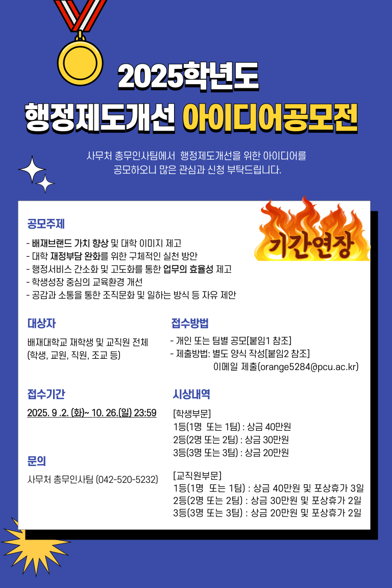 제목2025학년도 행정제도 개선 아이디어 공모전(접수기간 연장)