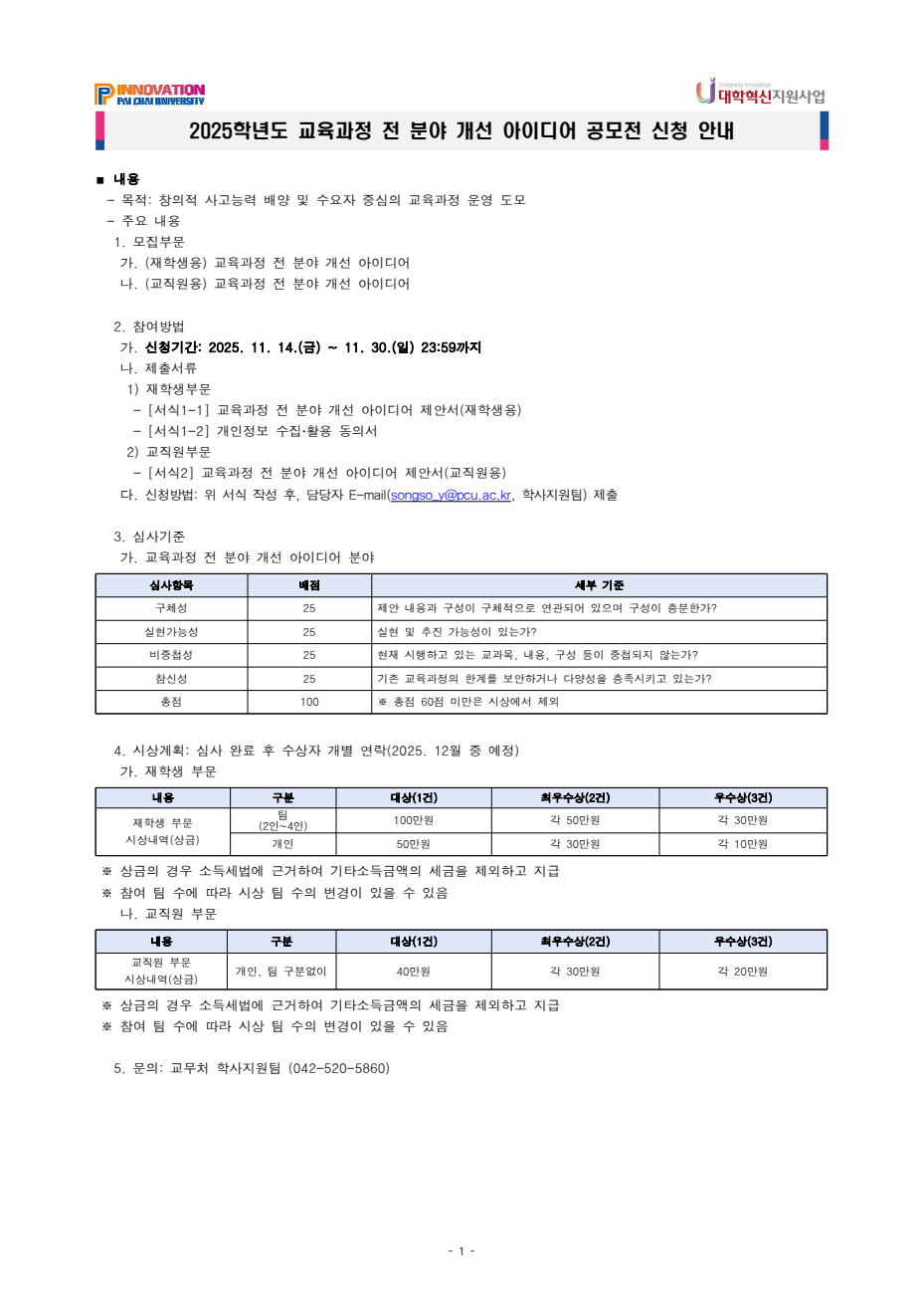 [사무처] 2025학년도 행정제도 개선 아이디어 공모전 심사결과 안내