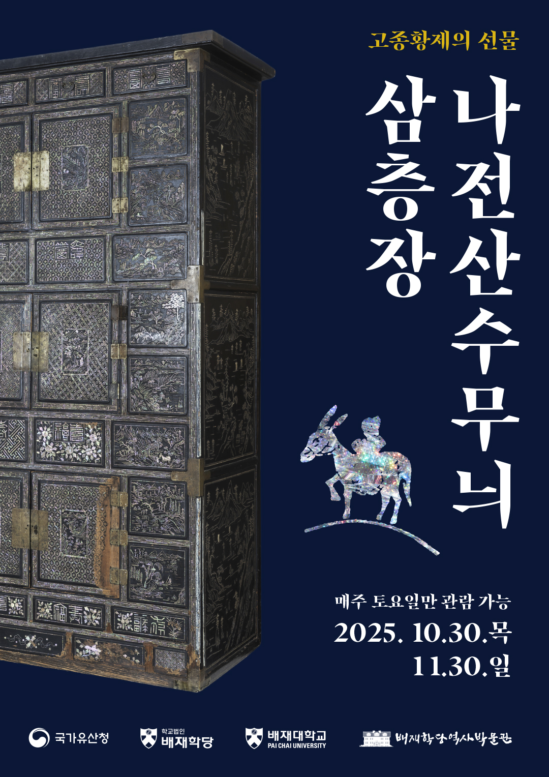 배재학당역사박물관은 '고종황제의 선물', 「나전산수무늬삼층장」의 국가민속문화유산 지정을 기념하여 공사기간내 한정적으로 공개할 예정입니다.