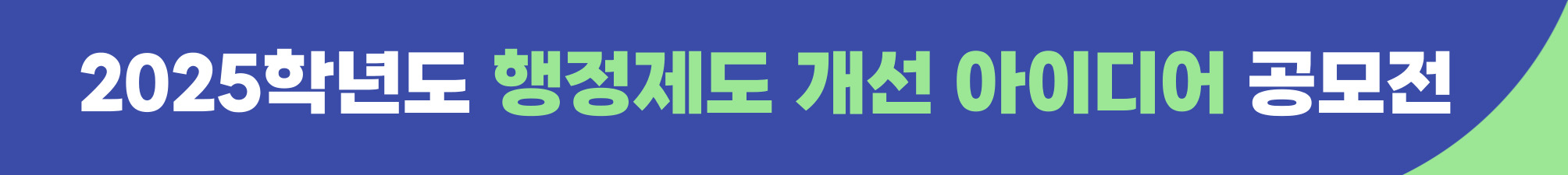 우리 대학의 행정 업무 효율성을 높이고, 구성원의 편의성과 만족도를 향상시키기 위한 2025학년도 행정 제도 개선 아이디어 공모전을 학생 포함 전 구성원을 대상으로 실시합니다. 실무를 담당하며 느끼신 불편함, 바꾸고 싶은 제도, 불편했던 서비스를 개선하는 아이디어를 자유롭게 제안해 주시기 바랍니다.