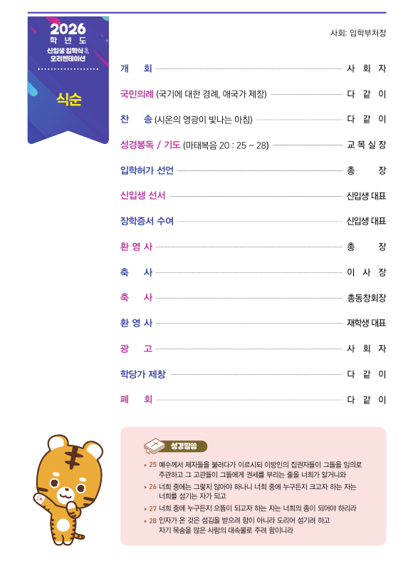 제목2026학년도 신입생 입학식 및 수강신청 안내