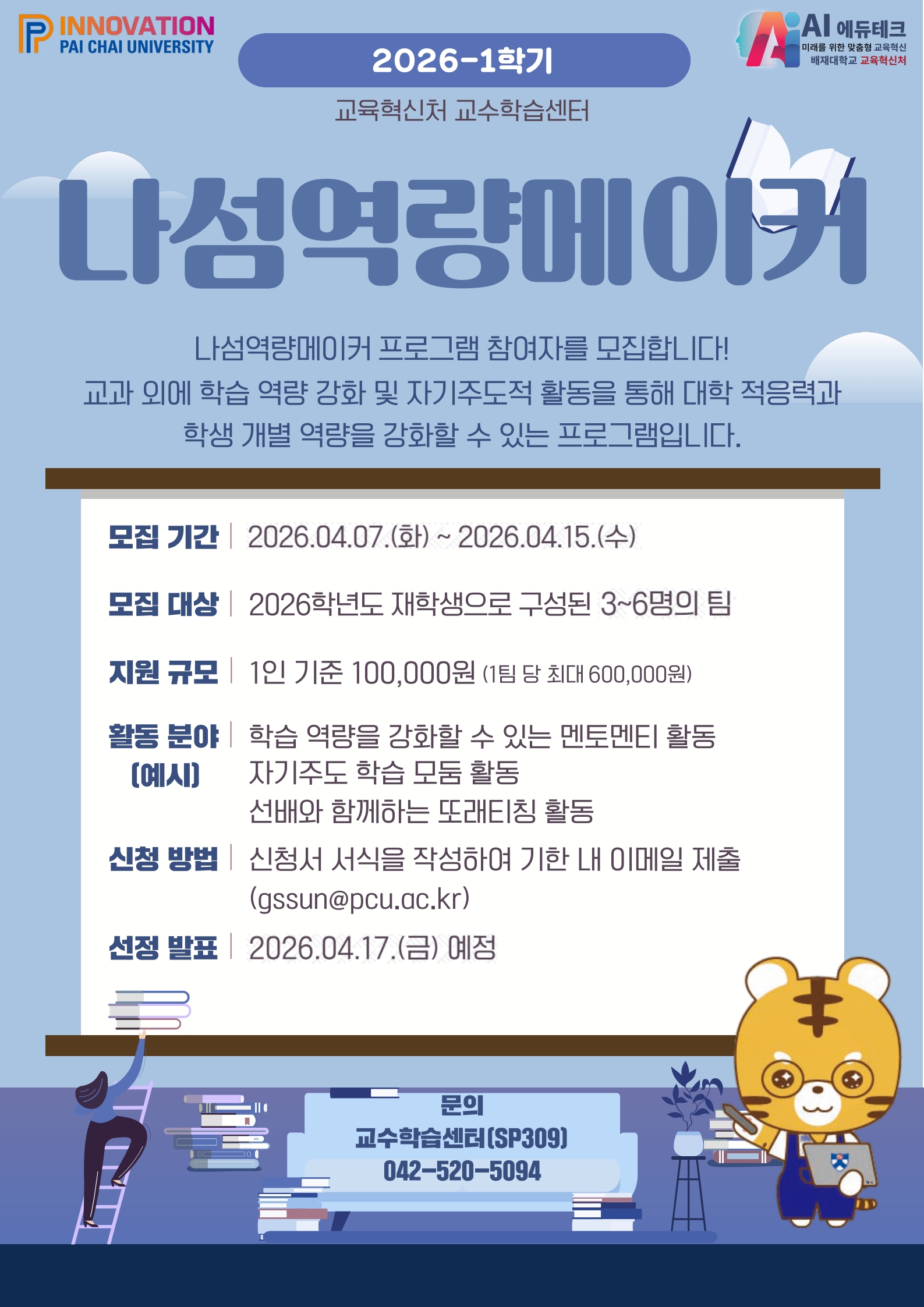 제목[교수학습센터] 2026학년도 1학기 나섬역량메이커 신청 안내