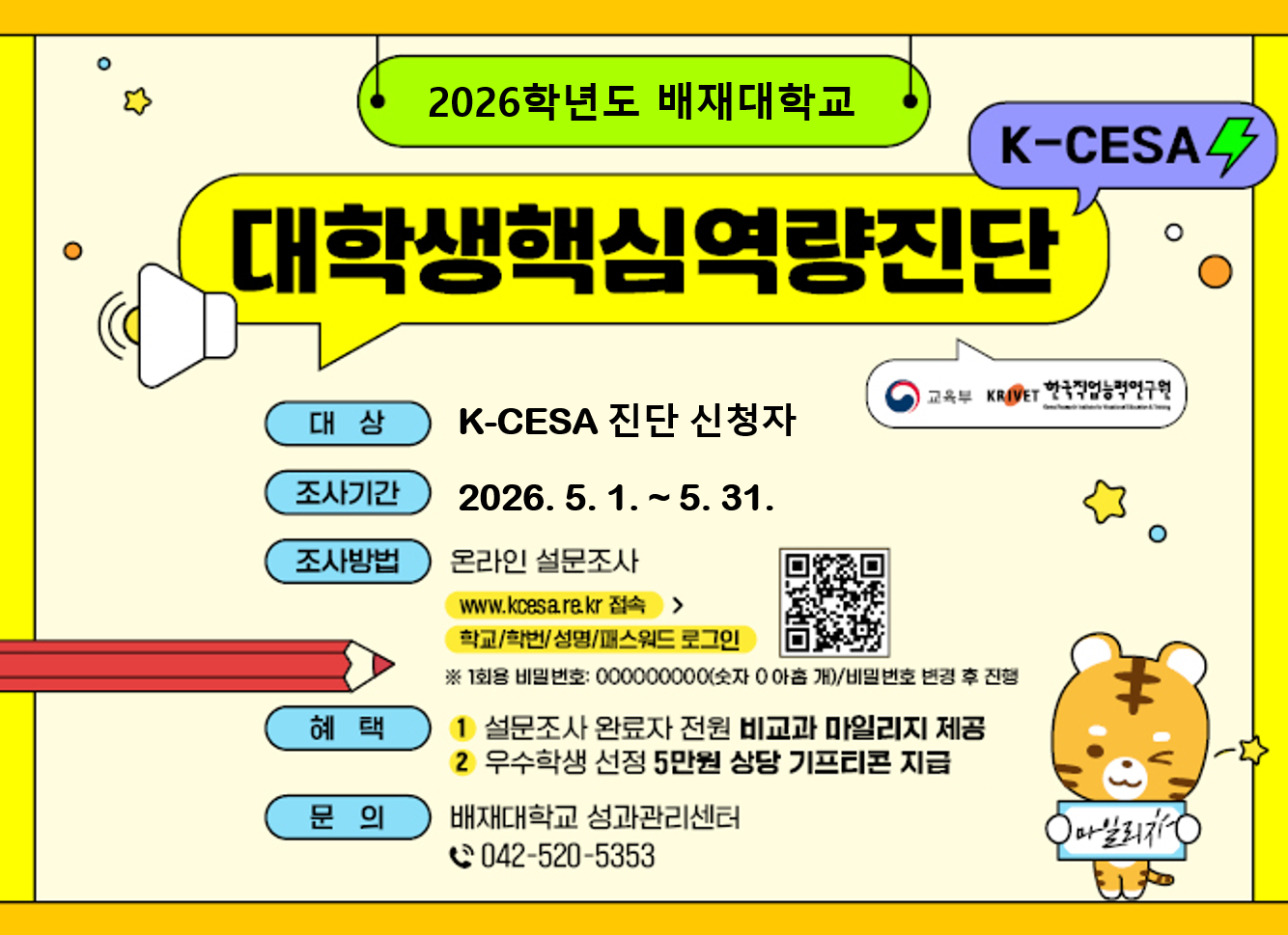 제목[기획처 성과관리센터] 2026학년도 대학생핵심역량진단(K-CESA) 안내