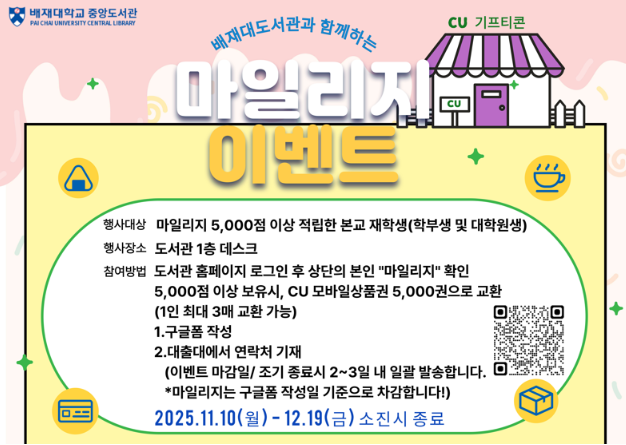 제목[중앙도서관] 2025학년도 2차 마일리지 차감 이벤트