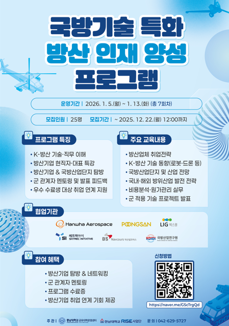 제목[대전형 공유대학] 비교과 프로그램 참여학생 모집(한남대학교 국방기술 특화 방산 인재)
