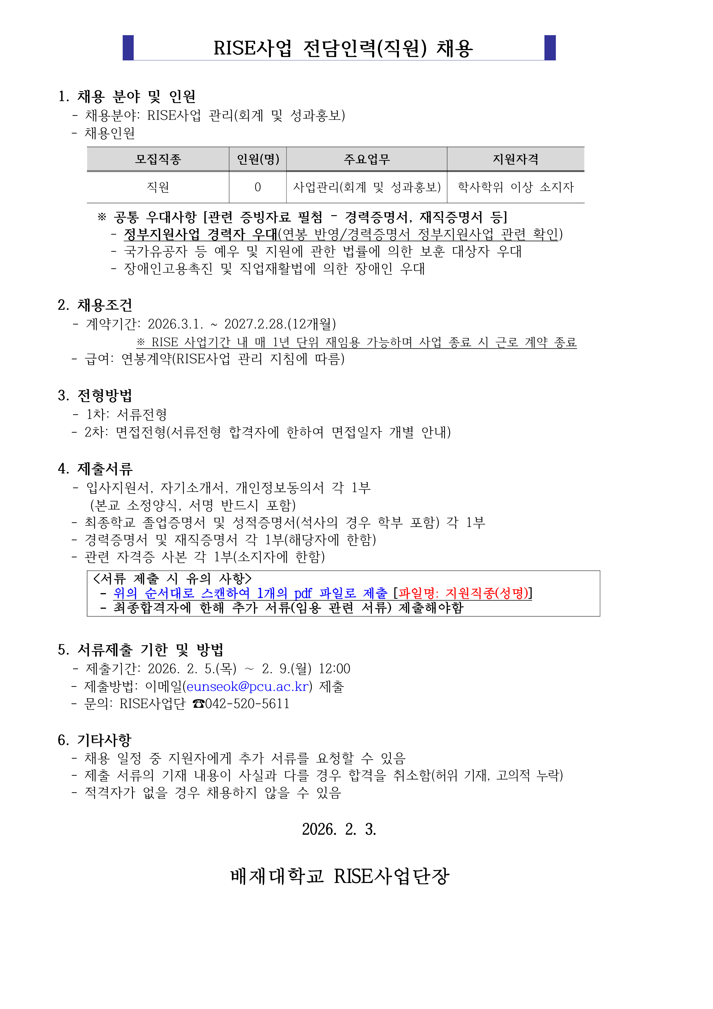 2026년 스마트ICT융합인재양성센터 연구교수 신규채용 재공고