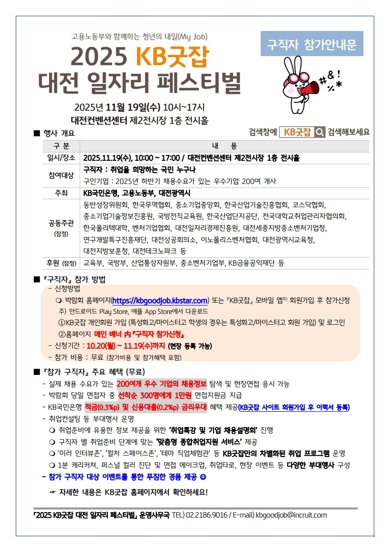 제목[KB국민은행] 2025 KB굿잡 대전 일자리 페스티벌 구직자 참가 안내