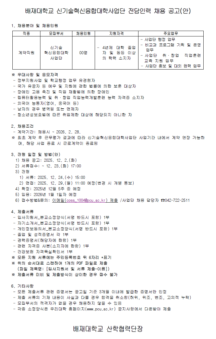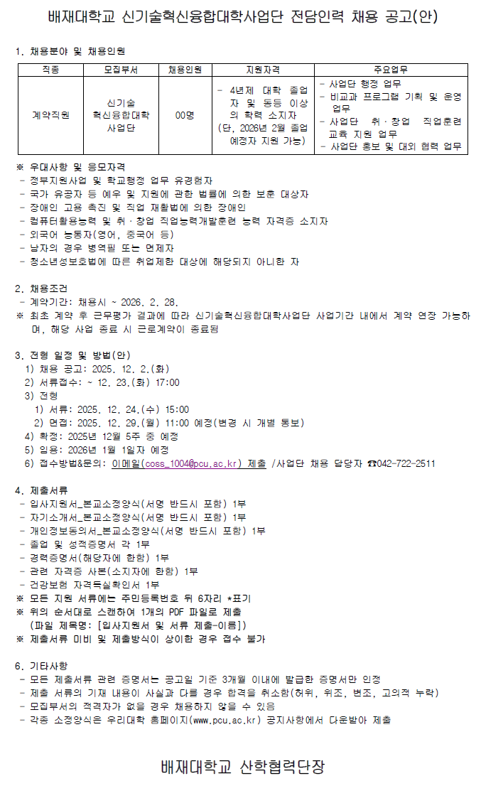 [신기술혁신융합대학사업단] 전담인력 신규채용 공고